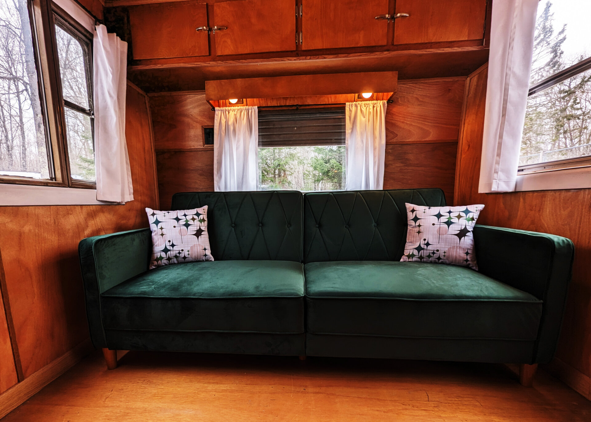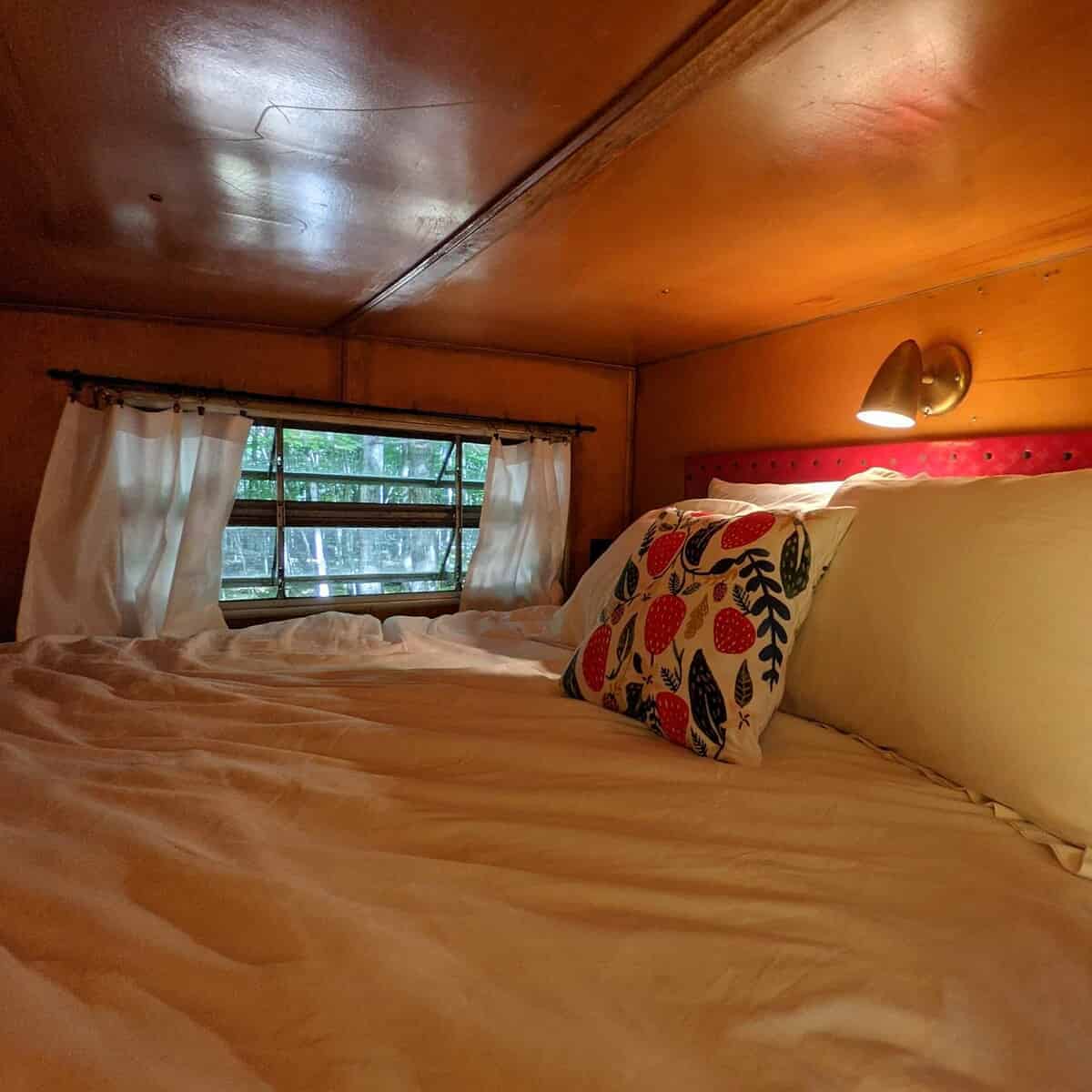 It has a queen size bed and queen futon, sleeping up to four. The bed area has a comfortable firm memory-foam mattress and upscale bedding. Fresh linens, blankets, pillows, towels, TP & paper towels, and bathroom/kitchen soaps are provided.