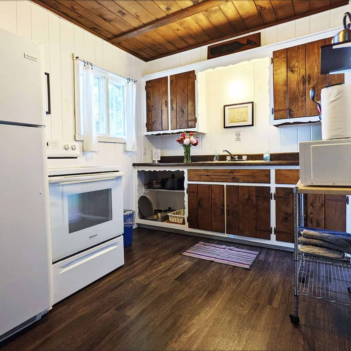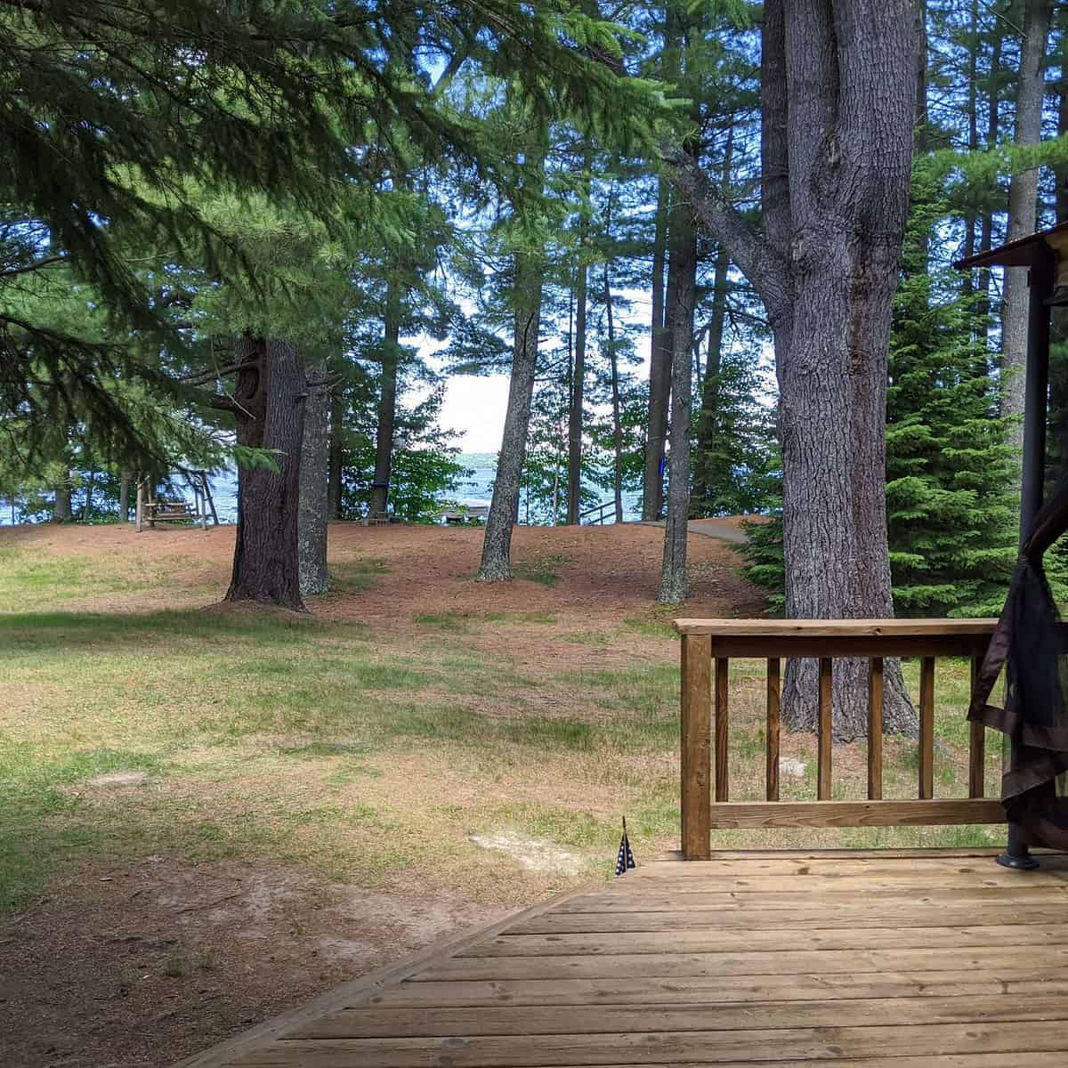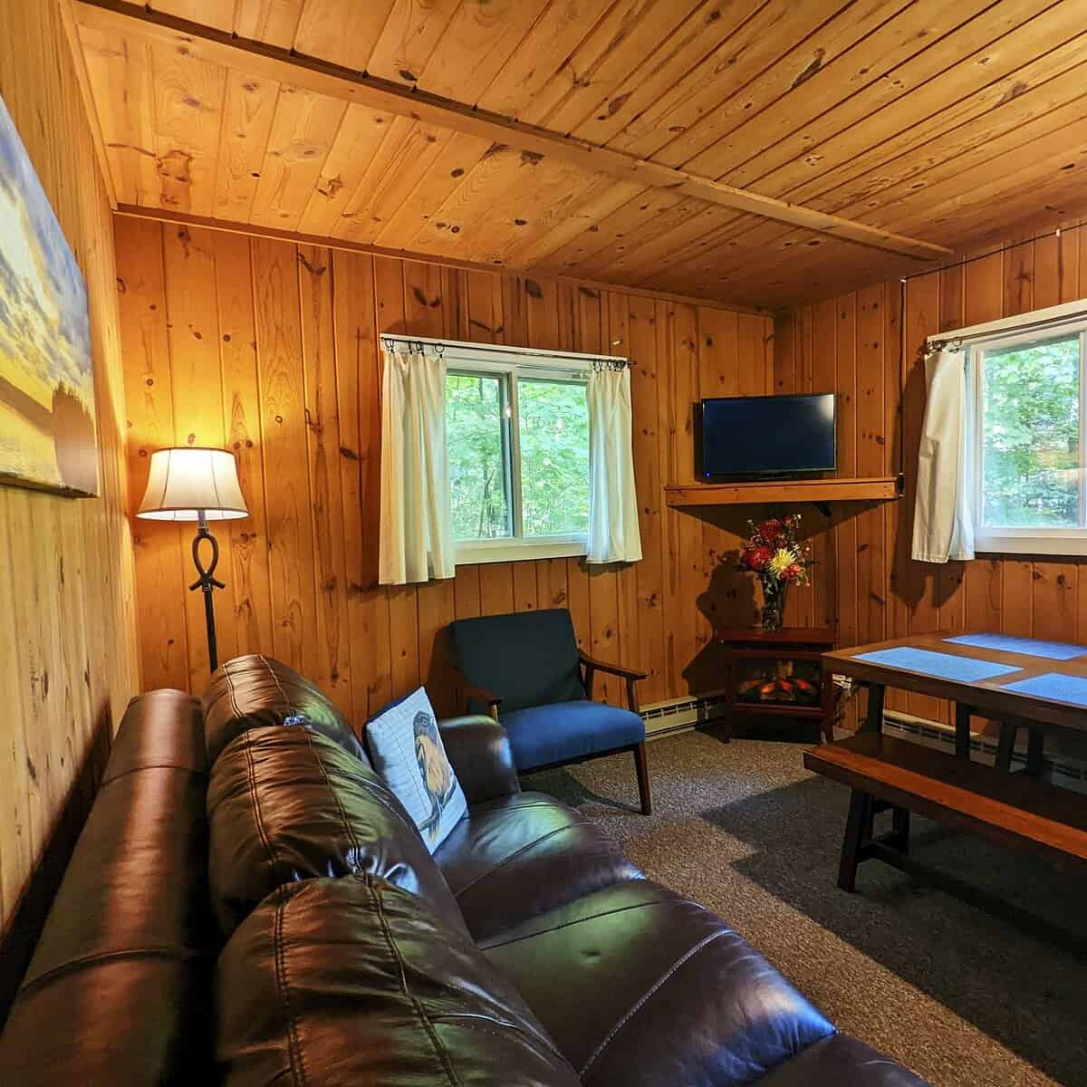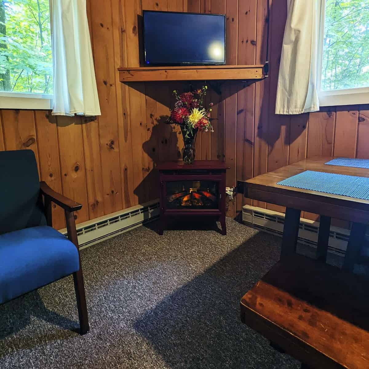 Fox’s Hole – Unit 11 is a lovely year-round (pet friendly!) waterfront cabin combining the charm of a Northwoods cottage with the conveniences of a home. The newly-renovated unit has a spacious living room/dining area, a fully-outfitted kitchen, and an updated roomy and bright full bathroom. A picnic table, fire ring, and charcoal and gas grills are right outside your door on the spacious deck. Part of the “Quad”, it shares a deck with 3 other units, which is great for groups and families. Perfect for couples or a small family!