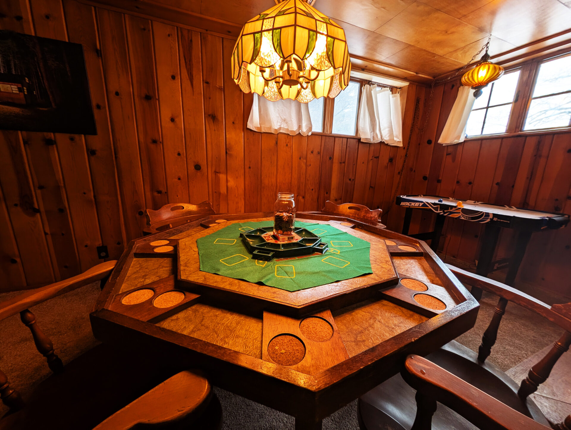Billiards. Vintage arcade games. A huge tv and sound system to watch the game. Tons of board games and puzzles. Foosball.