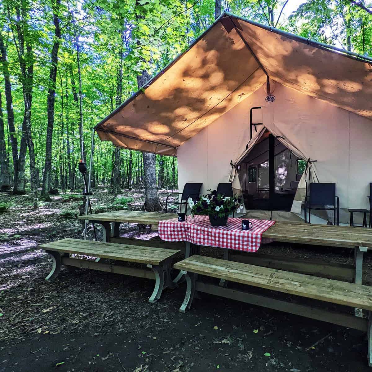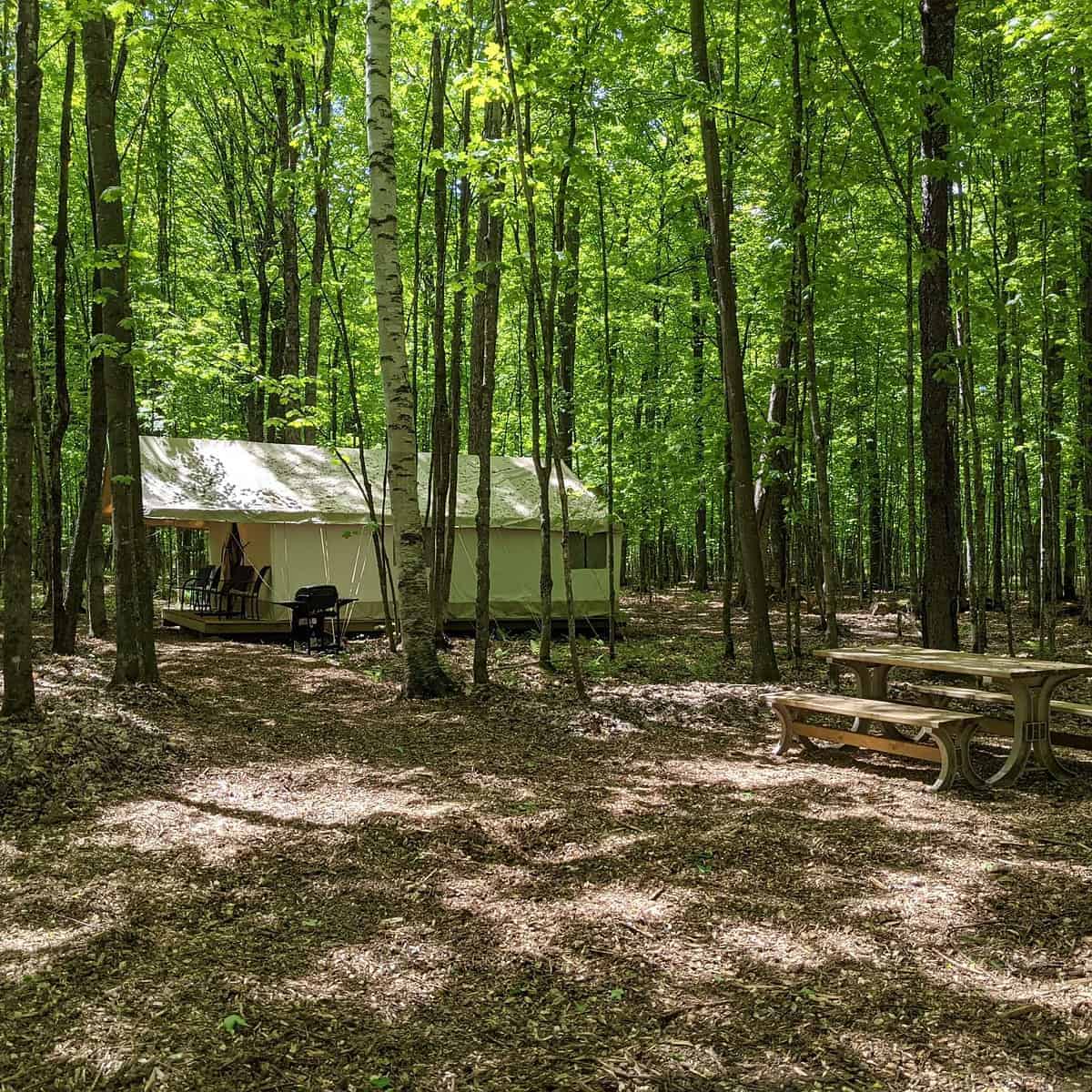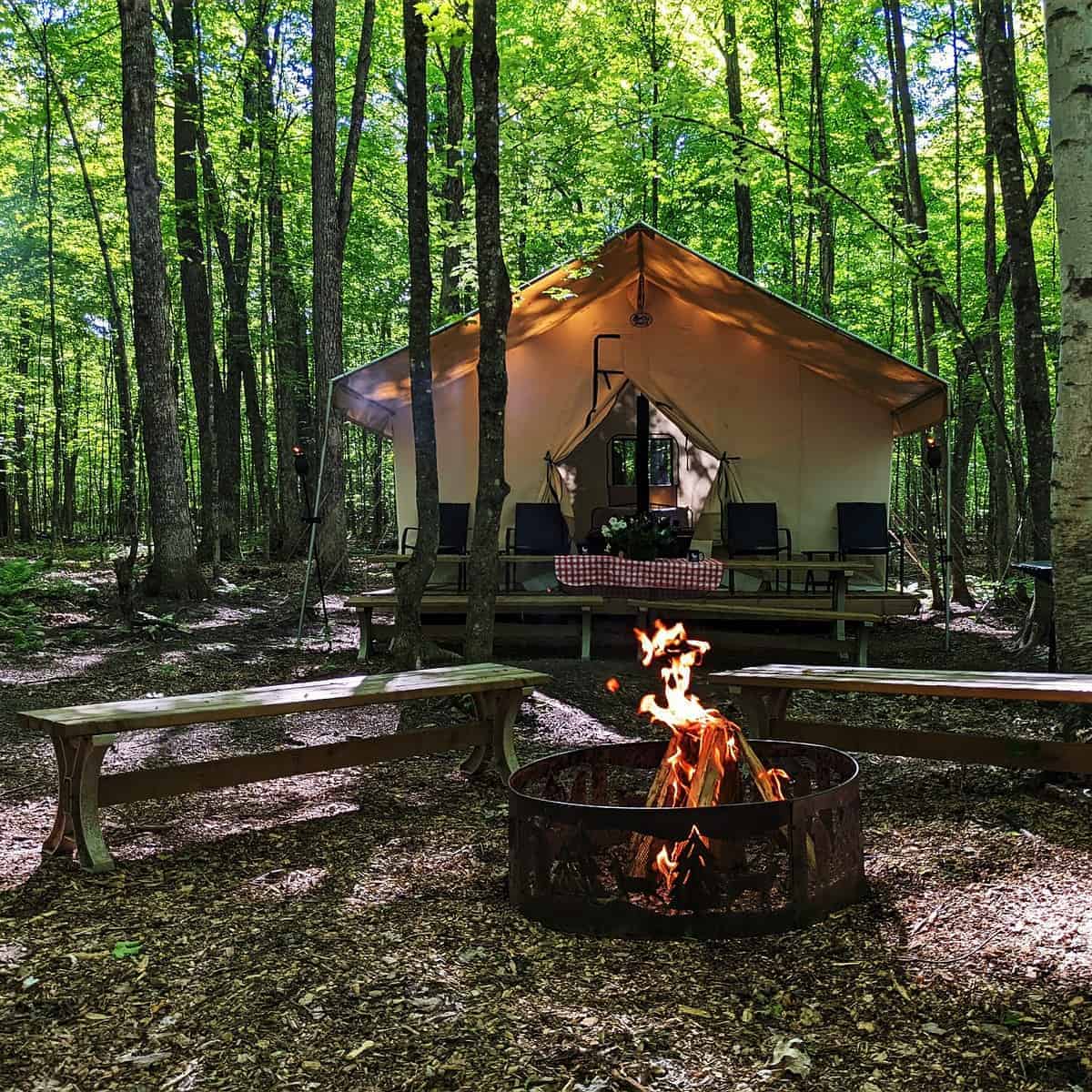 Our top-rated, family-oriented lakeside Wisconsin glamping takes you through back in time, experiencing the history of Northwoods camping through the decades through a period-authentic theme. Enjoy nature without having to pack all of your stuff! This glamping camper affords for the luxury of real furniture, lighting, and walls without the prices of travelling to an exotic location. The Wolfe affords for guests much more than just another shelter in nature; it will help you create lifelong memories and a sense of nostalgic adventure.