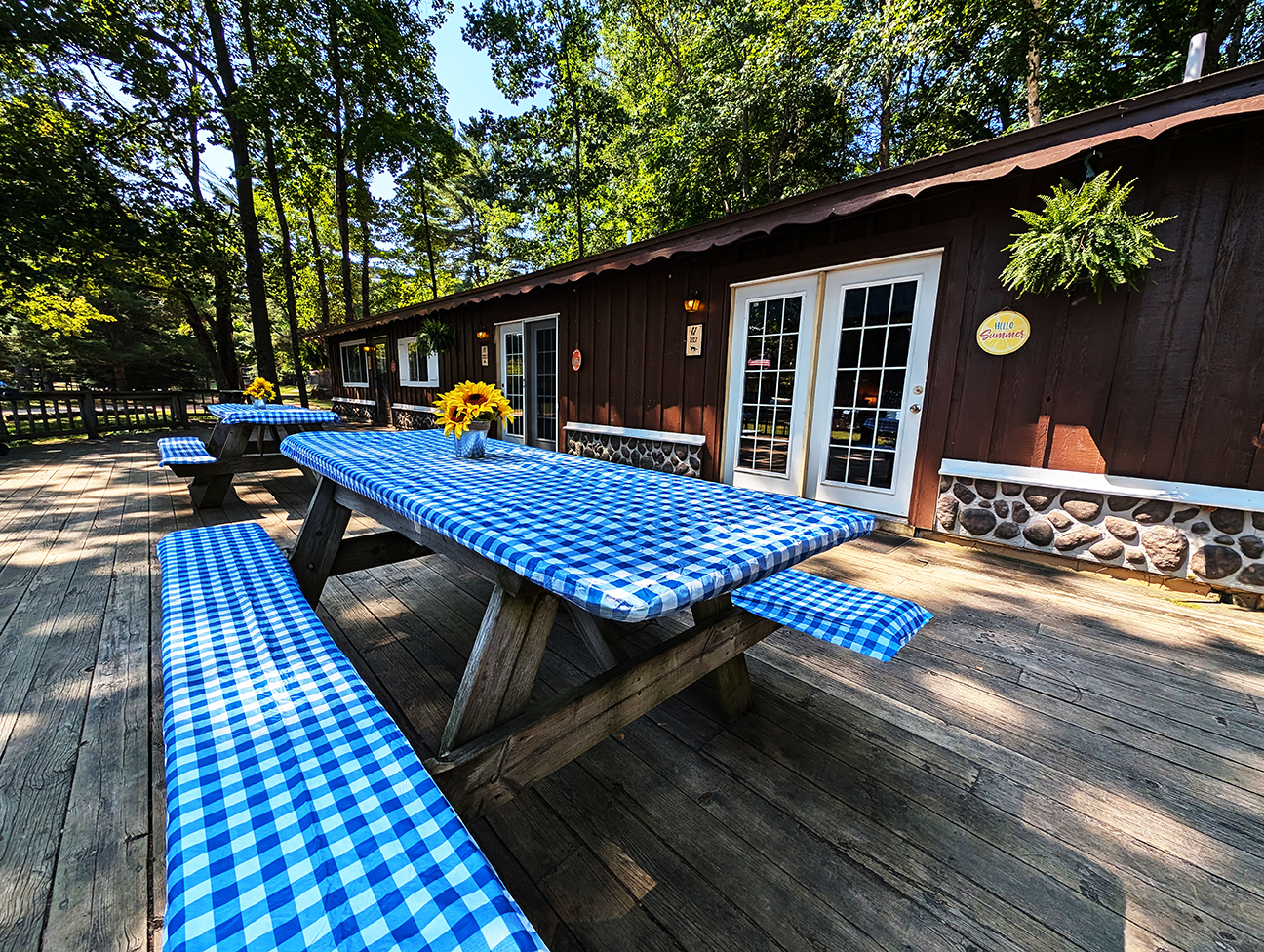 We are only a dog-friendly resort between the end of August and mid-June (not summer) – in Cabins 1, 3, 10, and 11 during that time frame. There is a $50/pet per stay fee.