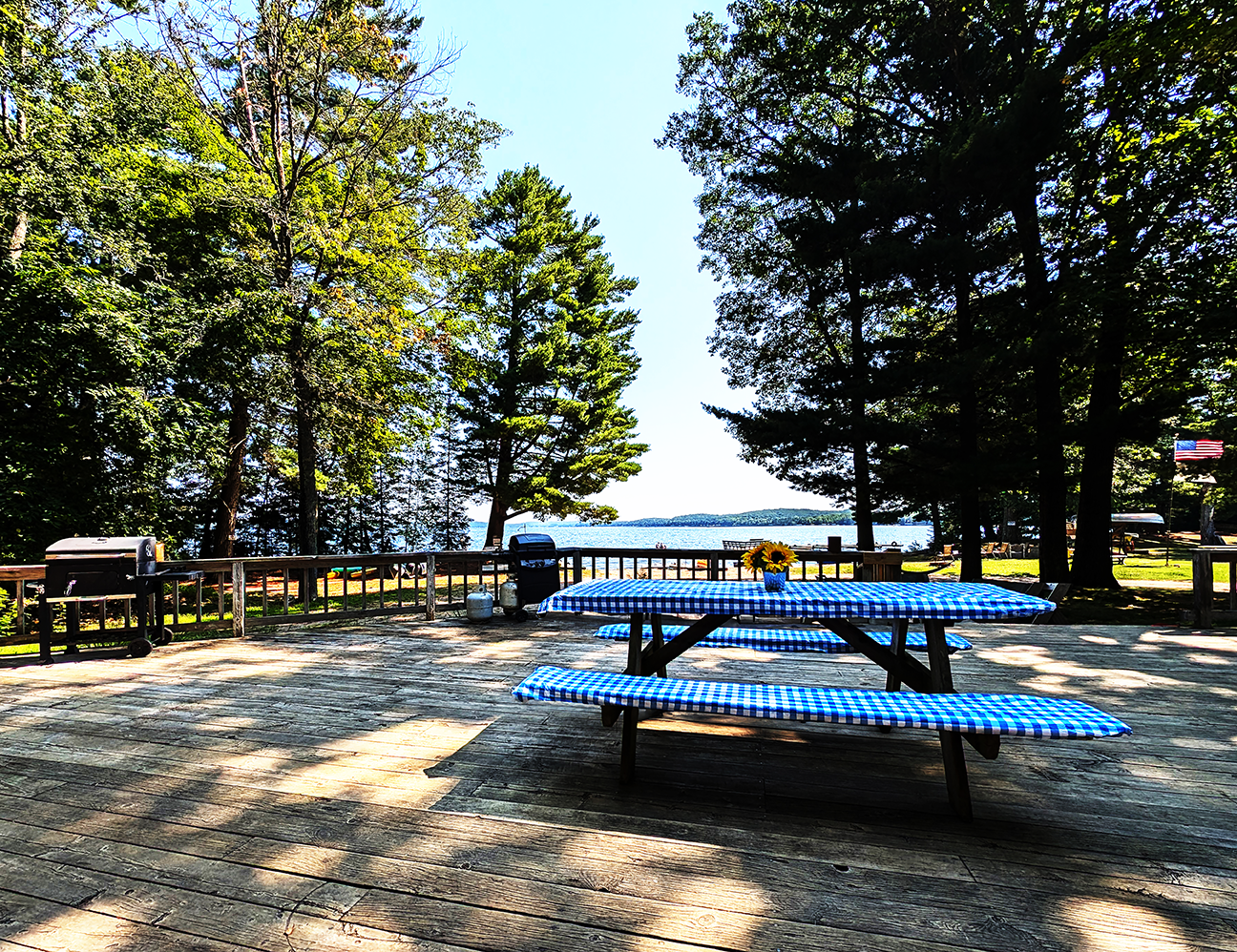 Bigfoot’s Sanctuary – Unit 13 is a newly-renovated, three-bedroom (sleeping 8) lovely log cabin right on the water. It has a big private gazebo/deck to enjoy your Northwoods adventure.