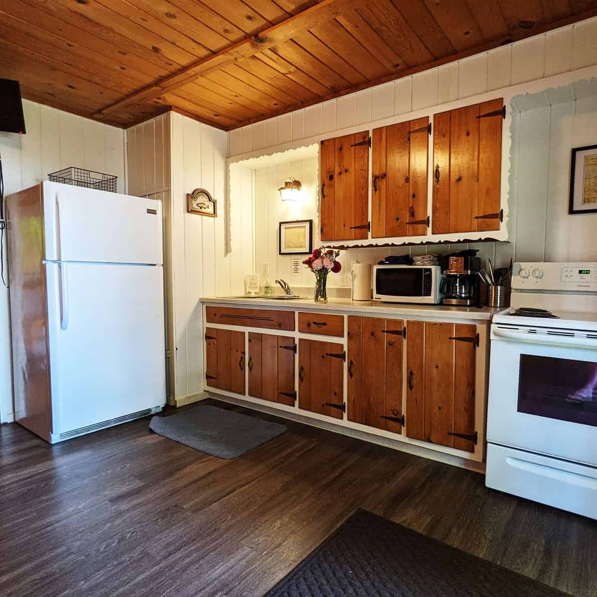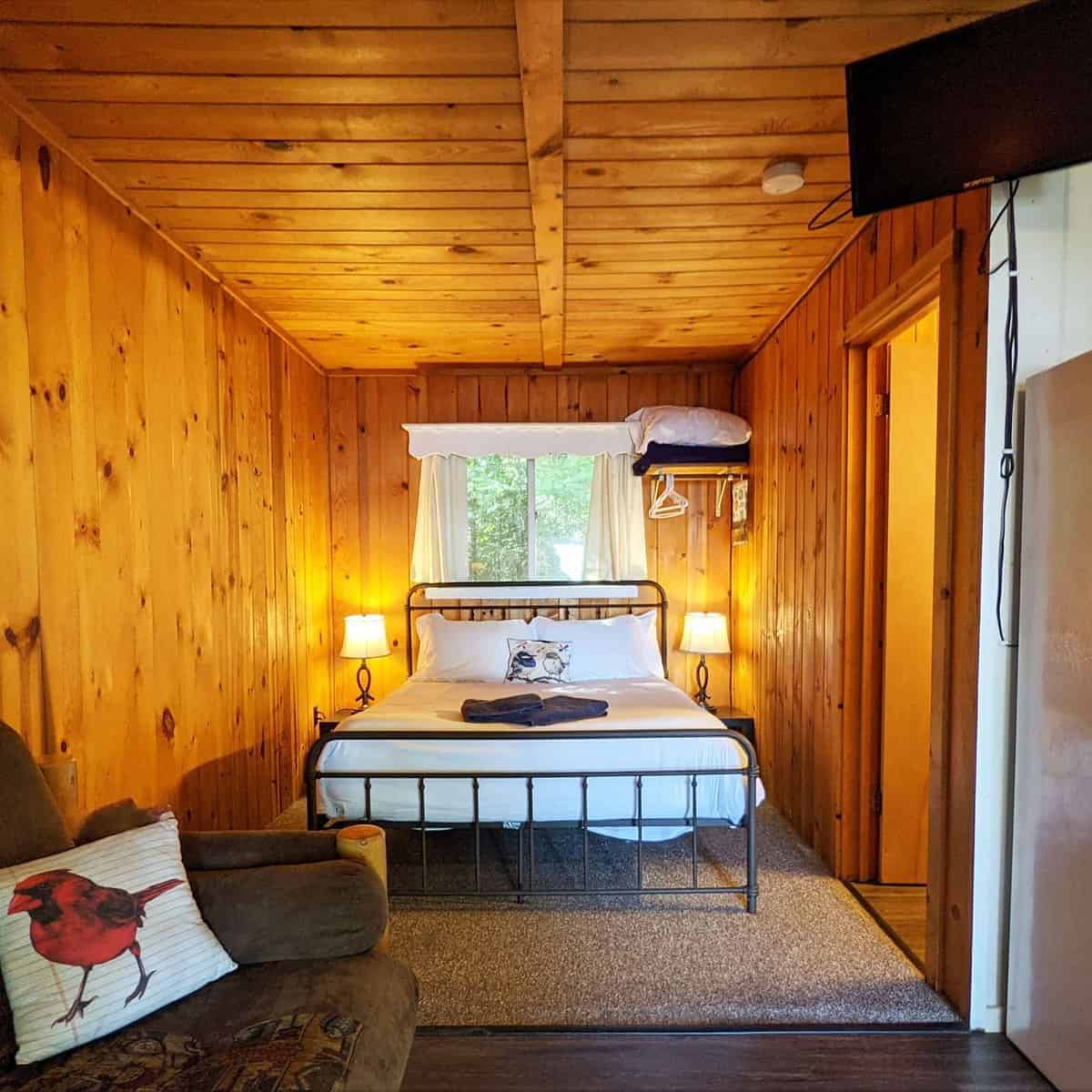 NOT A HOTEL | We are a lake resort, not a hotel, and ask you to help with a few things before check out. We provide towels (for cabins) and linens for everyone (which most resorts don’t), so we ask you to help strip the beds. While we don’t have time to clean all the cabin dishes between guests, we do provide dish soap and ask you wash them before you leave. Our goal – this extra time helps our team to make sure the units are so clean even Darren’s mom would stay here. And she does!
